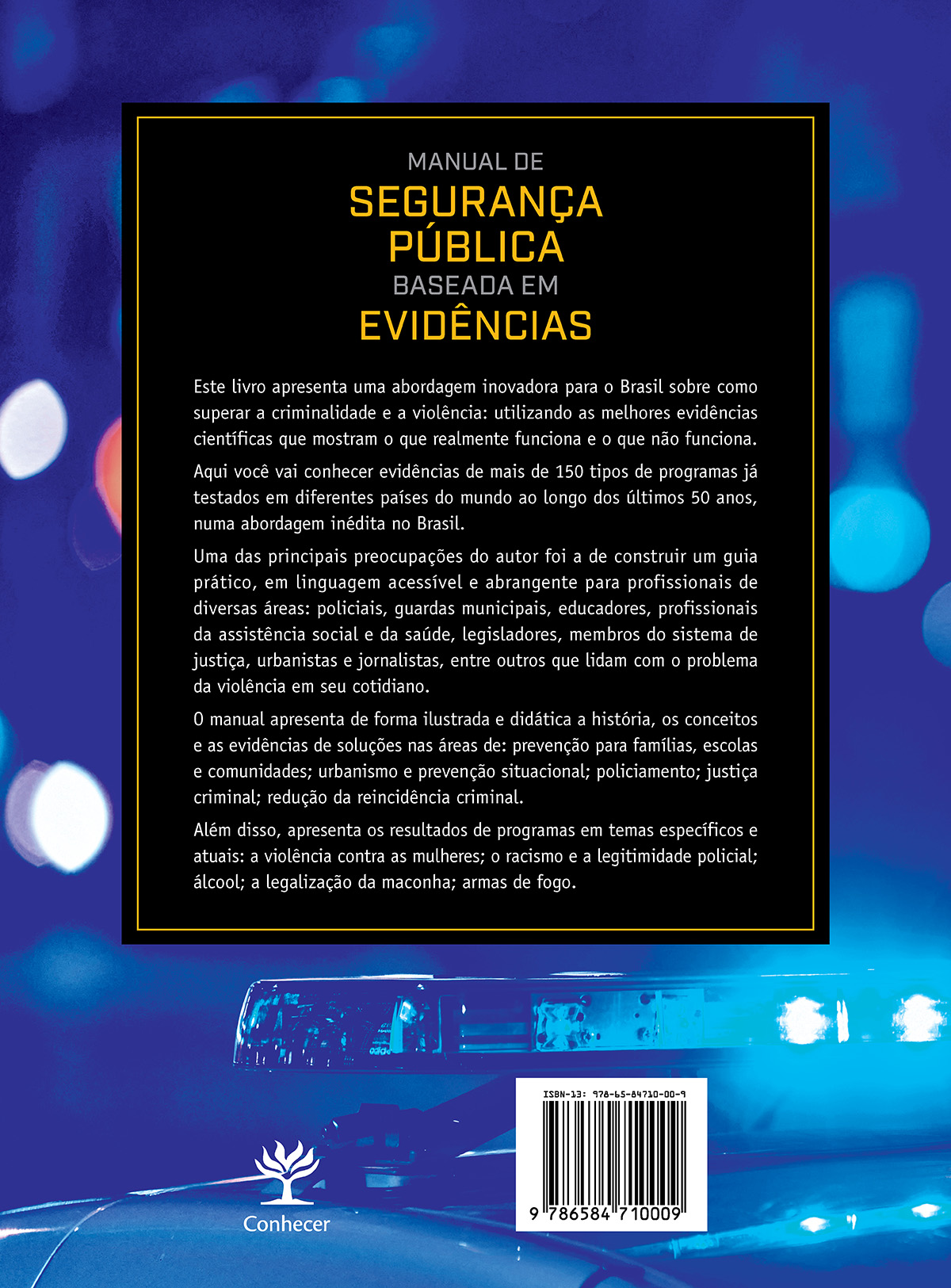 Uma obra multidisciplinar, que segue o conteúdo utilizado atualmente nas mais importantes Faculdades de Criminologia e Academias de Polícia do mundo, voltada para profissionais de diversas áreas: profissionais da segurança pública, educadores, profissionais da assistência social e da saúde, legisladores, membros do sistema de justiça, urbanistas, jornalistas, gestores, pesquisadores entre outros que lidam com o problema da violência em seu cotidiano.